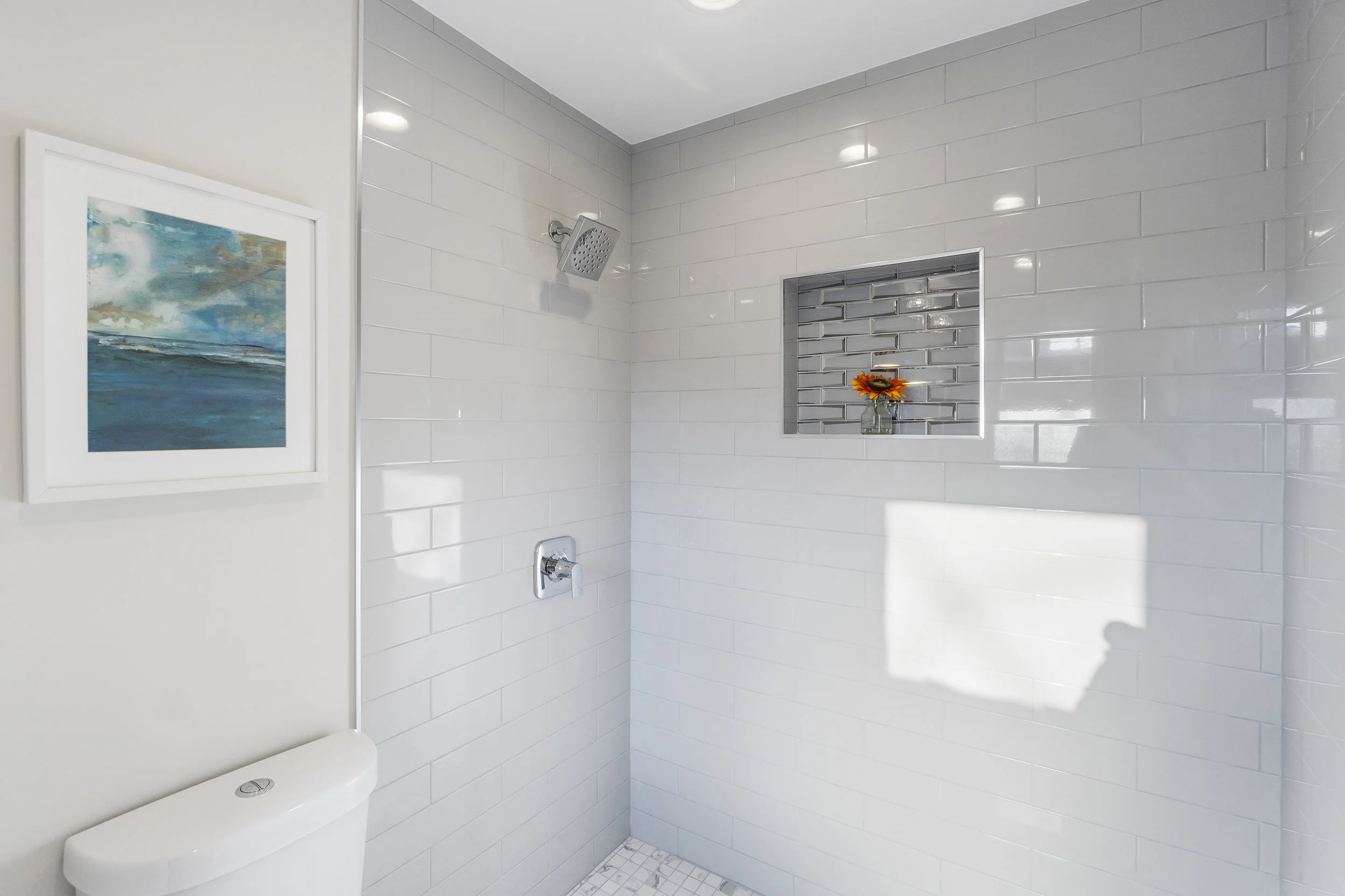 The gleaming refinished original hardwood flooring welcomes you to your spacious open concept main living area. With windows on 3 sides, including a gorgeous bay window in the living room, this space boasts an abundance of natural light. The modern kitchen features a beautiful center island, stainless steel appliances, and raised panel cabinetry, finished in antique white. Accented with modern pendant lighting, mosaic tile backsplash, and sleek granite countertop, this space lacks nothing for living and entertaining. Directly off your kitchen you~ll find a beautiful back deck (one of the few in the neighborhood!), so you can enjoy outdoor living as well. The bright, fully finished walk out lower level can easily be used as a family room, entertainment area, or home office. You~ll find laundry hookups and a sleek half bath on this level as well. Upstairs you~ll find 3 bedrooms, all with the character filled parquet flooring, refinished to its original brilliance. The shared hall bath is gorgeous, featuring a large double vanity, marble flooring and countertops, and a beautiful subway tile surround with mosaic tile inlay. The sunny master suite, complete with beautiful adjoining bathroom also featuring a double vanity and marble flooring. Large outdoor space with gorgeous curb appeal, and plenty of parking, with an attached garage and an additional space underneath the deck! Walking distance from Germantown Ave, Pleasant Playground, Septa train station and bus lines, schools, local shopping and close to Chestnut Hill and Germantown Neighborhoods. What are you waiting for? This home could be yours!